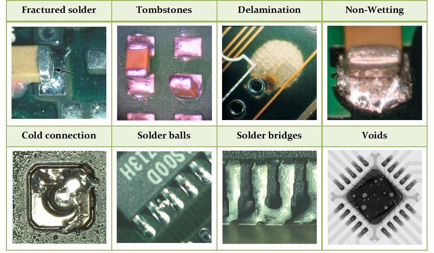 • 逻辑删除:当组件从一侧抬起时发生,类似于逻辑删除。原因包括加热不均匀或焊膏过多。解决方案:确保均匀的焊膏应用和平衡的热分布。对称放置较大的组件,以最大限度地减少热梯度。